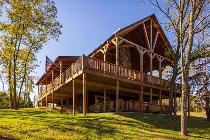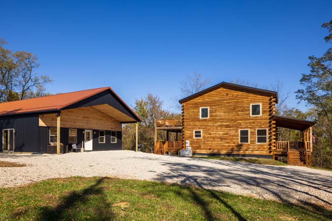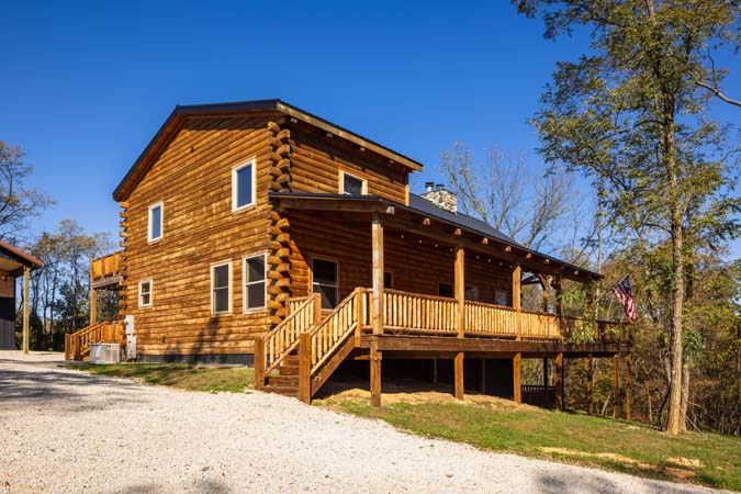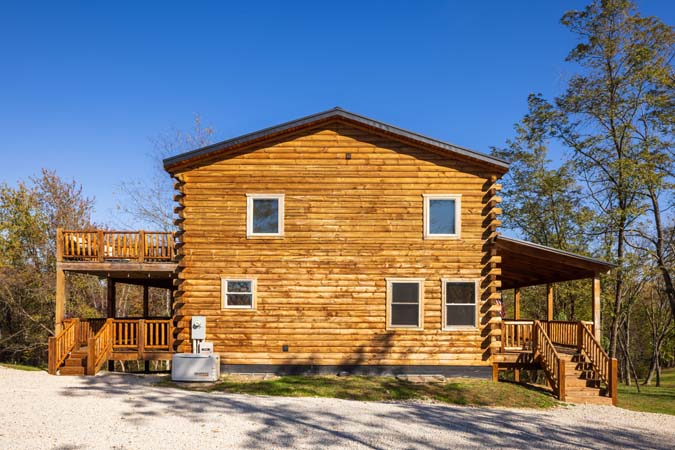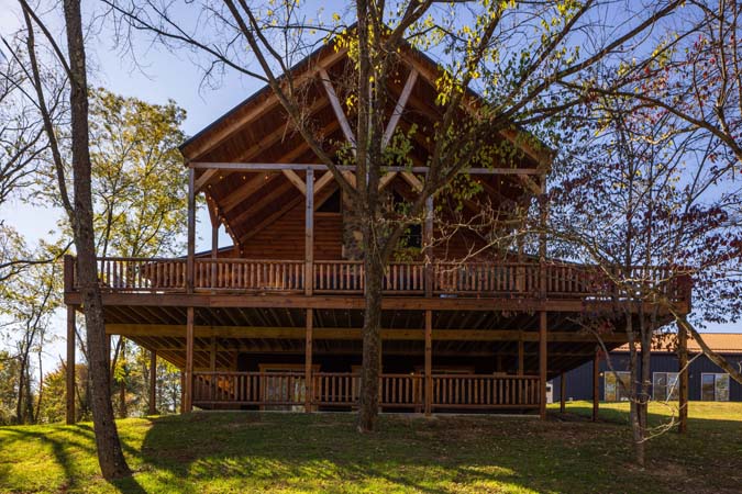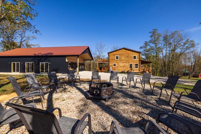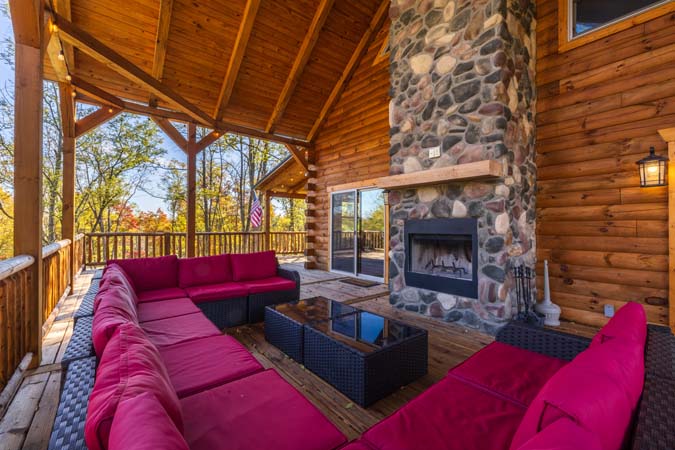 Highland Lodge is the place to be in the Hocking Hills. Sister to Green Acres. Highland Lodge is our newest addition to the Hocking Hills, and it's a beauty! This newly built lodge sleeps 16 comfortably in 5 private King bedrooms in the lodge, a sleeping loft with 4 twins beds and also 1 private king bedroom in the pool house which has an indoor heated saltwater pool. There is also 4 full bathrooms in the lodge and 1 full bathroom in the pool house. Centrally located and just 10 minutes to Conkles Hollow, Rock House, and Cantwell Cliffs, you'll be enjoying the fresh air in no time. You'll love the cathedral ceiling in the gorgeous great room, which features a stone fireplace, natural wood columns, and chef's kitchen complete with granite counter tops and stainless steel appliances. Take some time to relax on the wrap-around covered porch on the main level, complete with outdoor wood-burning stone fireplace and comfortable patio furniture, You can also enjoy the view from the sleeping loft, an upstairs bedroom balcony, or from the 2 lower level bedrooms with access to the lower patio with private hot tub. The lower level also includes a pool table, 60-game arcade cocktail table and large flat screen TV for your enjoyment. Sit around the fire ring and tell stories of the day or reminisce about the past. We are confident you will enjoy your Premier experience Woodland Lodge. Your search for the perfect Hocking Hills cabins is complete. Don't delay as reservations fill up fast. Book your stay with Hocking Hills Premier Cabins today! Exterior security cameras are in use at this property at parking area. Not Pet friendly.
