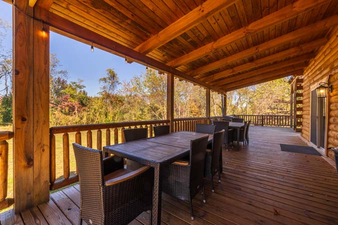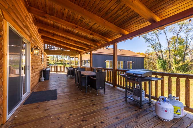- Wrap-around deck with plenty of seating
