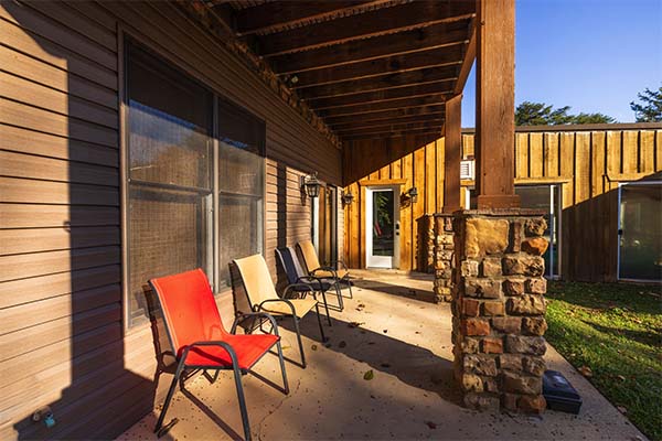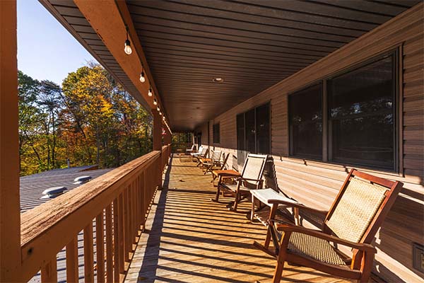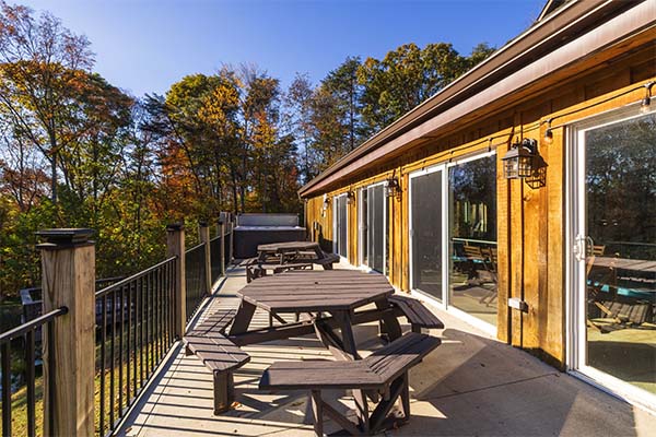 - Large deck with tables