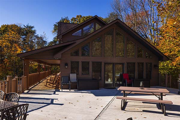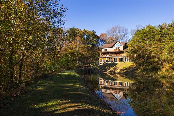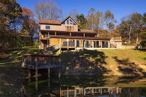 Hilltop Retreat sits 1200 feet off the road in secluded setting atop a hill with over 20 acres to hike on. There's 6,200 square feet of luxury accommodations along with a spacious deck overlooking the tree lined hillside. You'll wish your stay was longer to enjoy all this lodge has to offer.